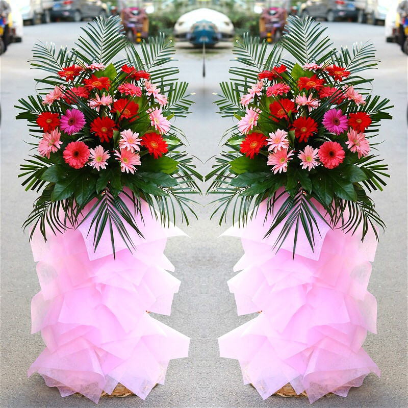朋友开业,很满意!!!上午准时送到!朋友开业很满意!!!花篮也很丰满