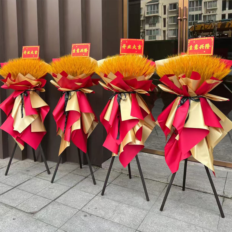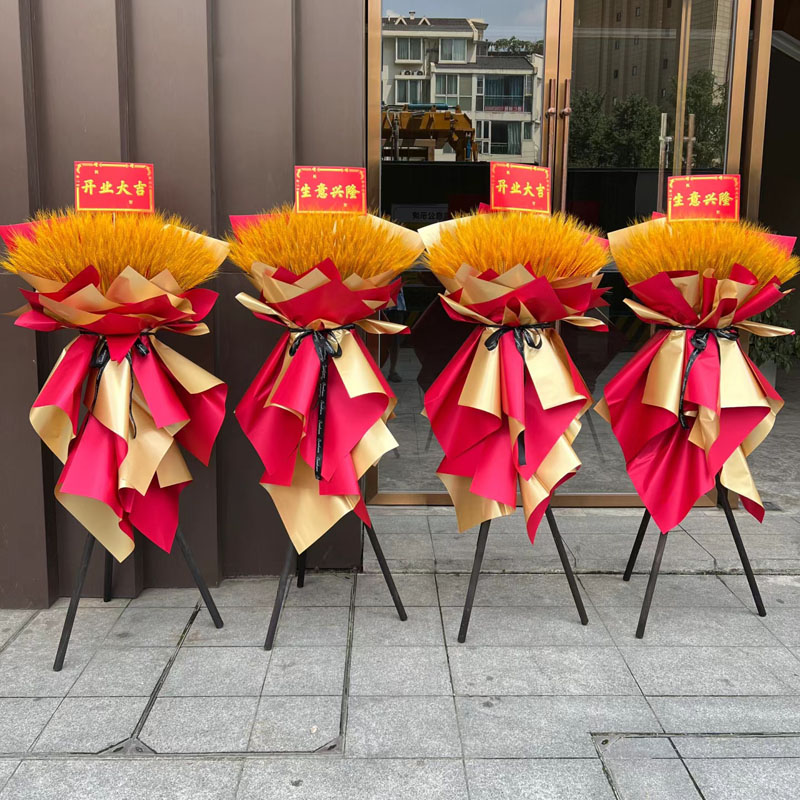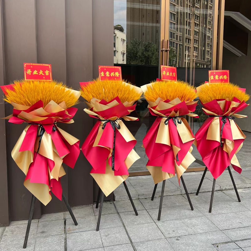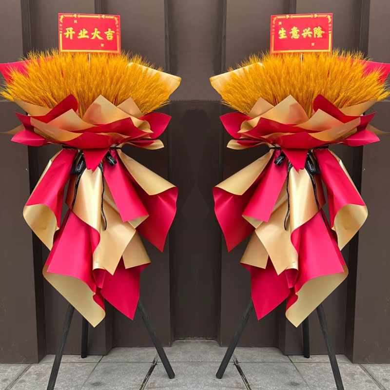 花 材:300支大麦,红色/金色双面纸韩式包装,红色缎带束扎。