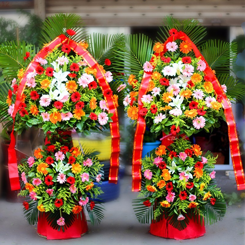 花语: 由于包扎花篮的花艺师不同,可能在花篮的形式和搭配上与图片不完全一致,但我们保证鲜花的主花材品种、新鲜程度、数量、颜色与说明一致。