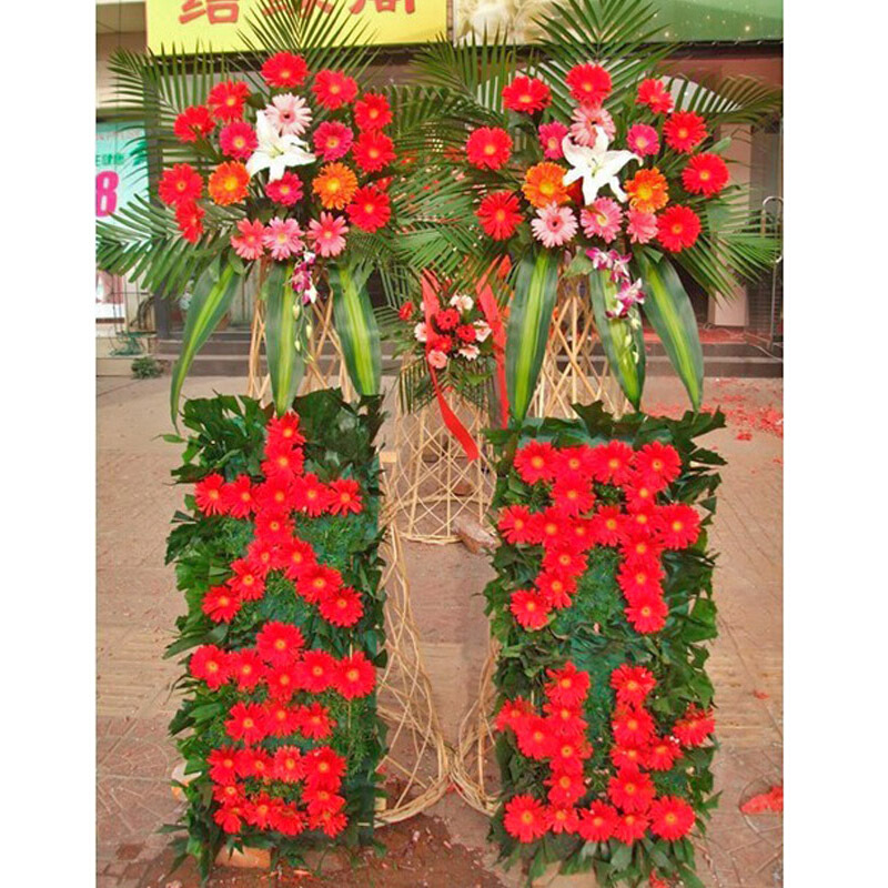 包 装:单个花篮价格(此花篮建议订1对,单个花篮则无“开业大吉”拼字,改为双层弗朗花篮)