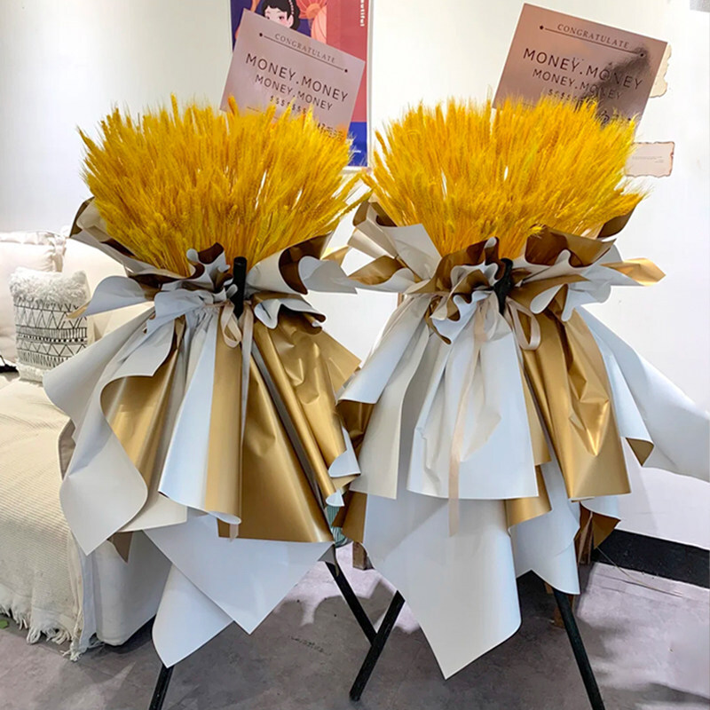 花材: 500支大麦,金色白色双面纸多层花束包扎,香槟色花结。