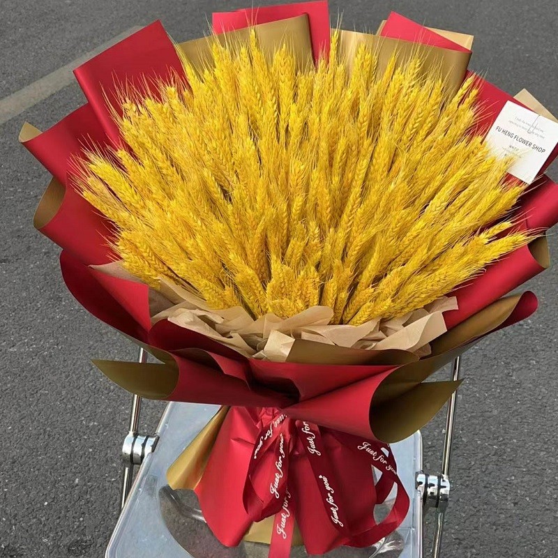 花 材:500支大麦,香槟色手揉纸内衬,红色双面纸外包,同色系花结。