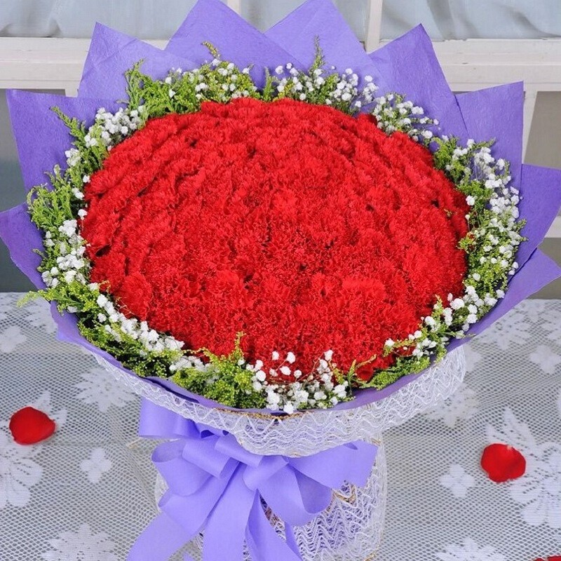 【爱的银河】99朵红色康乃馨,搭配白色满天星外围环绕。