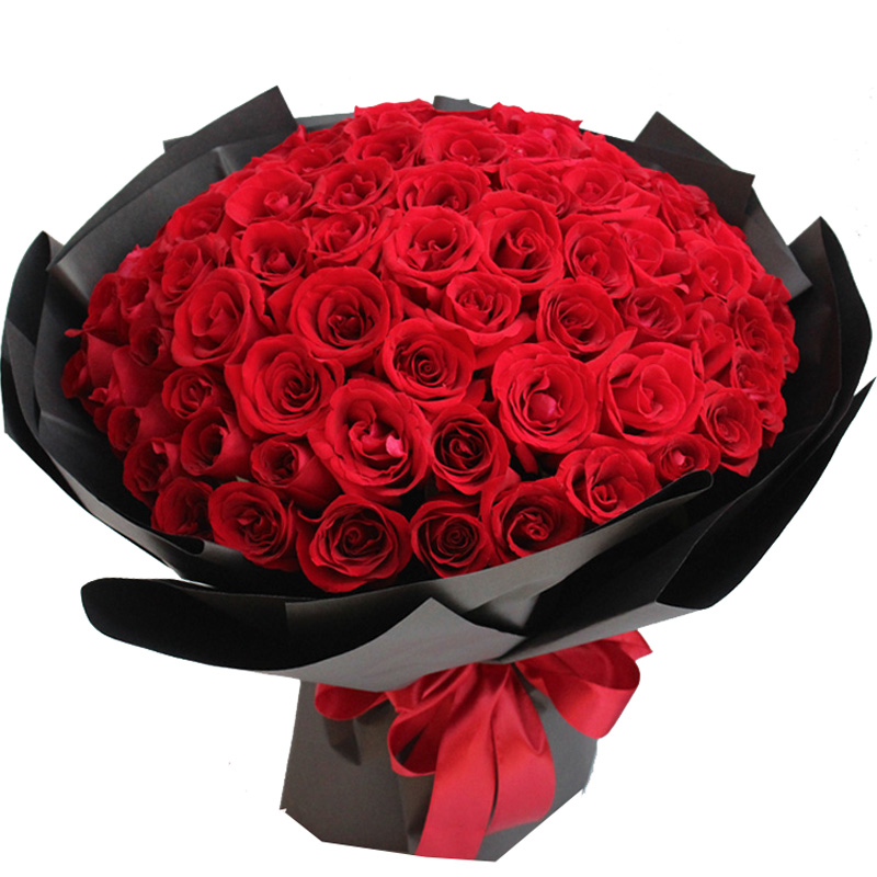 【我的女神】99朵红玫瑰,心形造型。黑色网纱外包。
