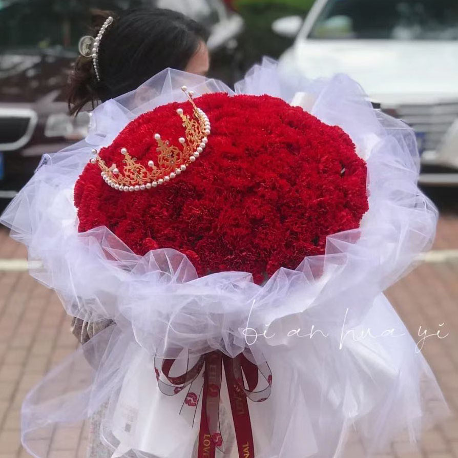 【牵挂一生】99支红色康乃馨,皇冠装饰。