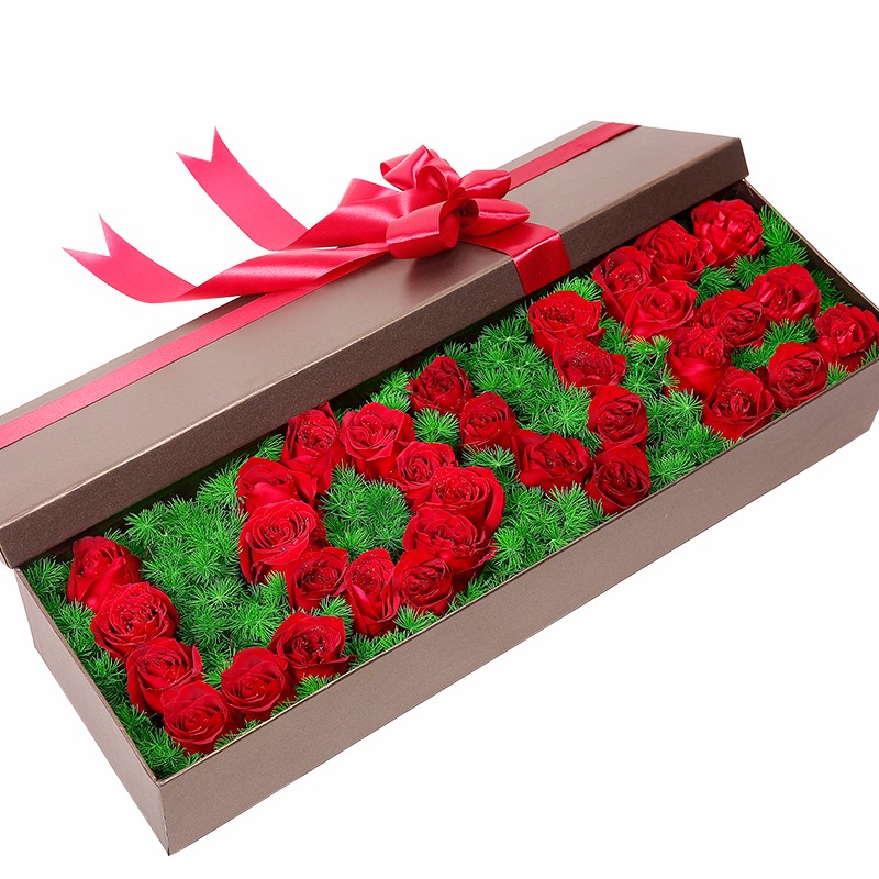 【LOVE-一世相依】33支精品红玫瑰,搭配天冬门打底(若天冬门断货则用其他同效果配草替换)。