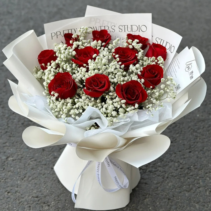 【爱的秘密】11朵红玫瑰,搭配满天星丰满间插。