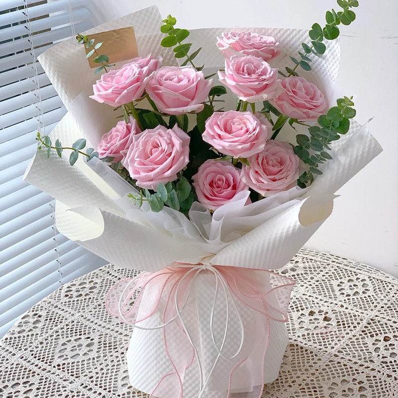 • 【温柔浪漫】11朵粉雪山玫瑰,搭配尤加利叶装饰。