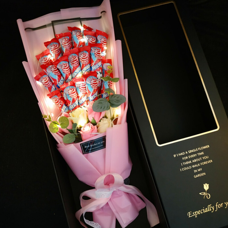 【最亮的星星】99颗棒棒糖,搭配粉色满天星外围环绕。