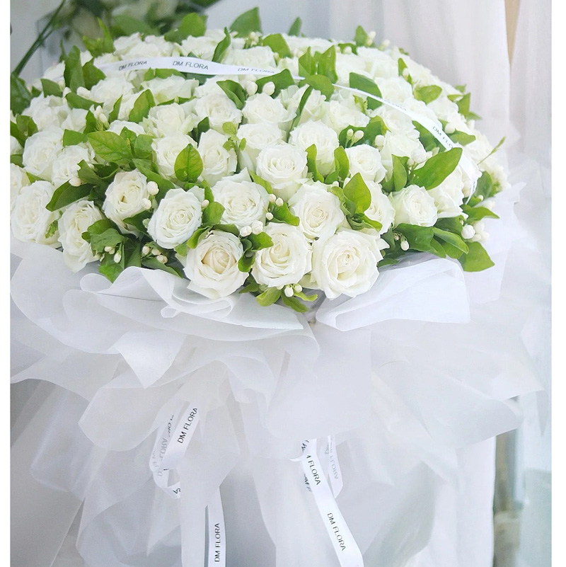 【念念不忘】99朵白玫瑰松散包装,茉莉花丰满间插装饰(若茉莉花不当季断货,则用尤加利叶、栀子叶搭配白色满天星或者洋桔梗装饰)