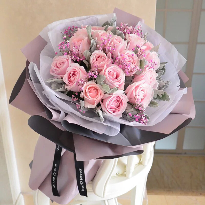 【如月明如星辉】19支精品粉玫瑰,搭配适量尤加利