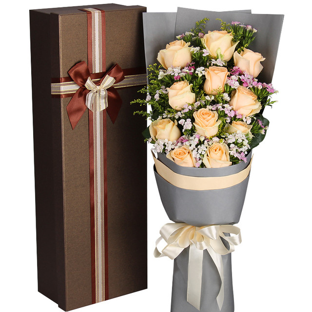 【槟色祝福】11朵精品香槟玫瑰,搭配黄莺、相思梅。