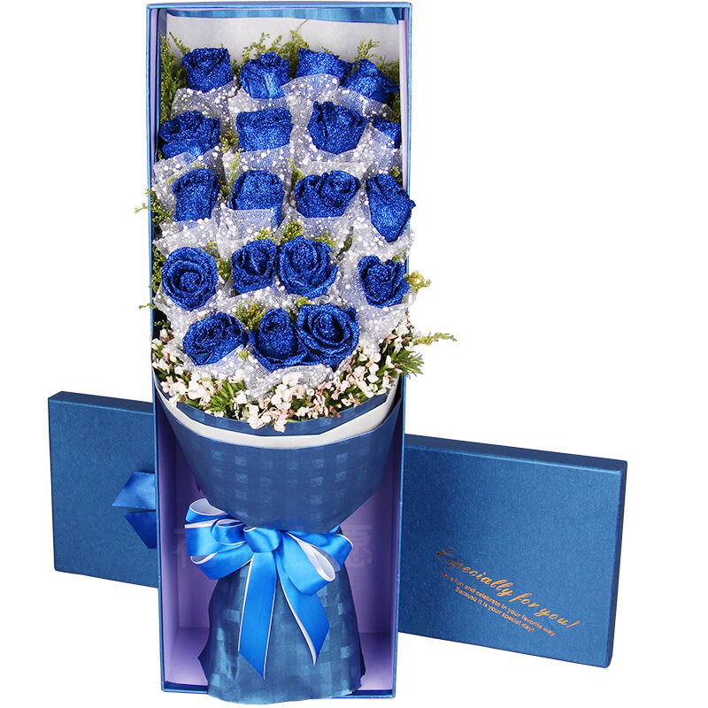 【幸福起点】19朵蓝色妖姬,搭配高山积雪。