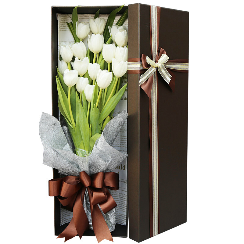 • 【爱意浓浓】精选16朵白色郁金香,一串珍珠装饰花面。(郁金香为季节性花材,花期为3-5月,需提前订购)