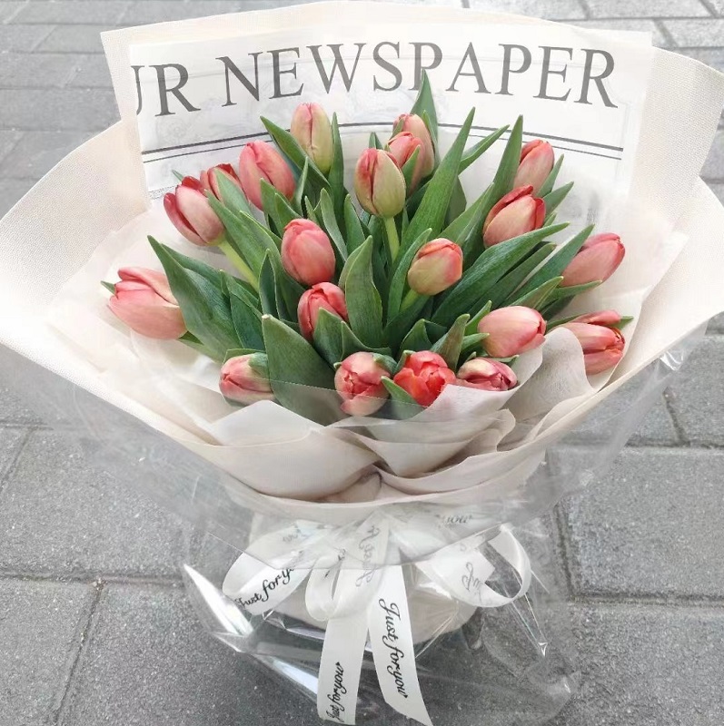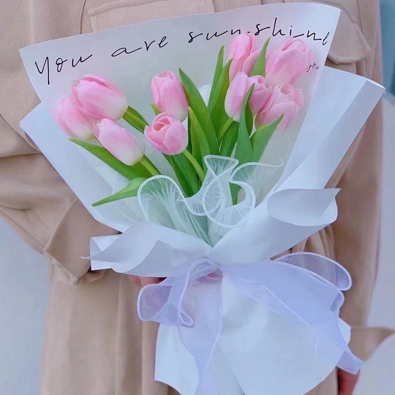 • 【光阴念安】精选19朵粉色郁金香,搭配小雏菊等配花装饰。(郁金香为季节性花材,花期为3-5月,需提前订购)