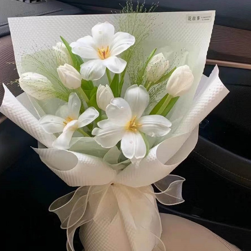 • 【春天来了】精选9朵白色郁金香,喷泉草装饰。(郁金香为季节性花材,花期为3-5月,需提前订购)
