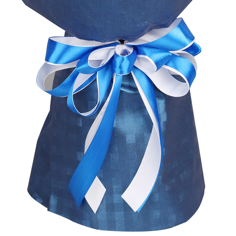 包 装:蓝色平面纸包装,蓝色缎带扎成法式蝴蝶结。