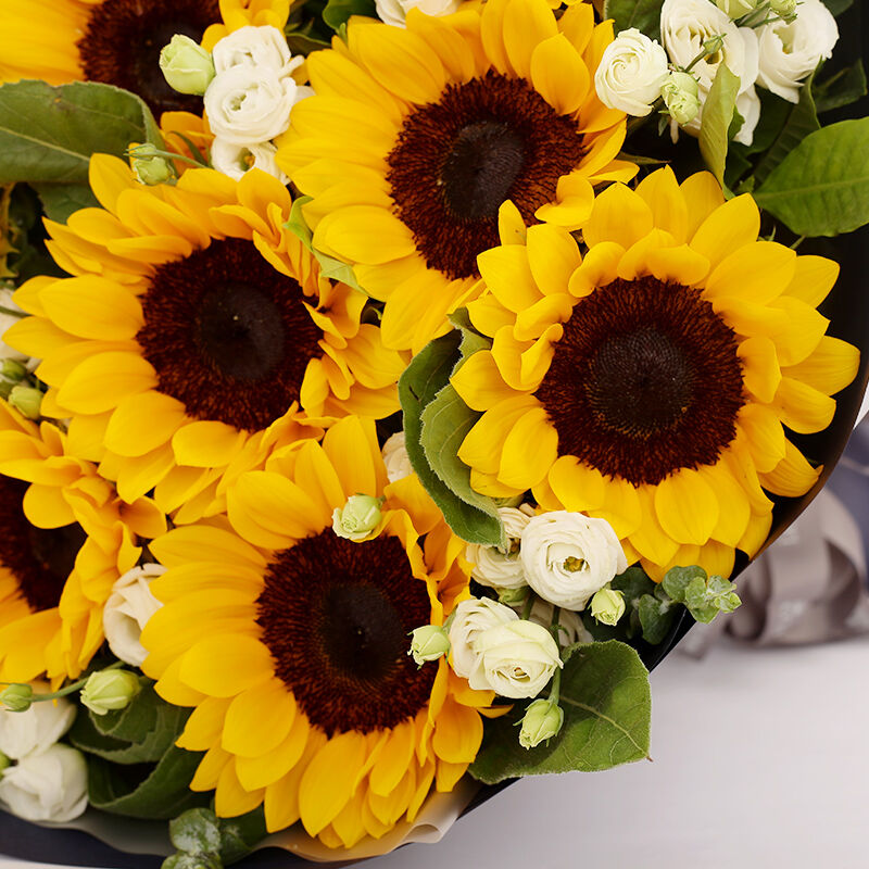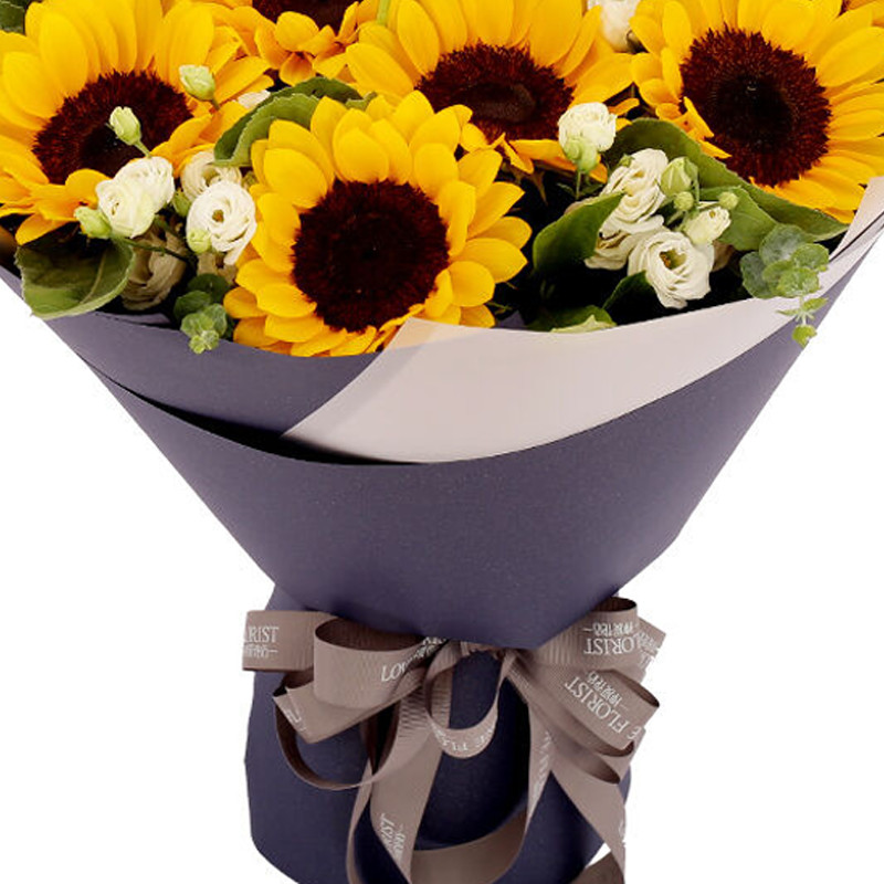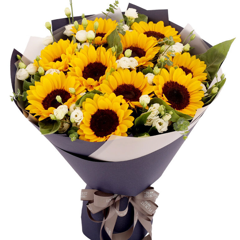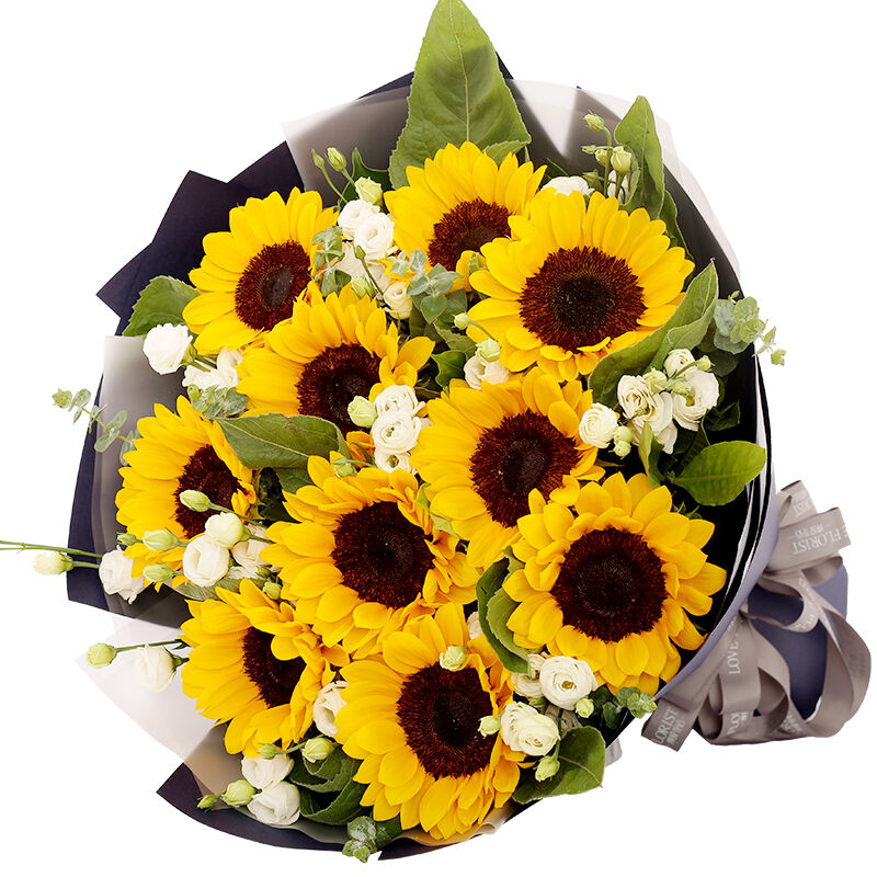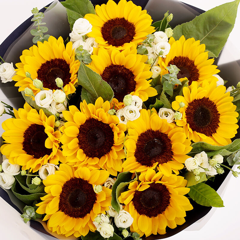 花 材:10支向日葵,搭配洋桔梗、绿叶。