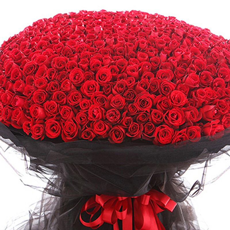 花材: 精选520枝卡罗拉红玫瑰,球形立体包扎。