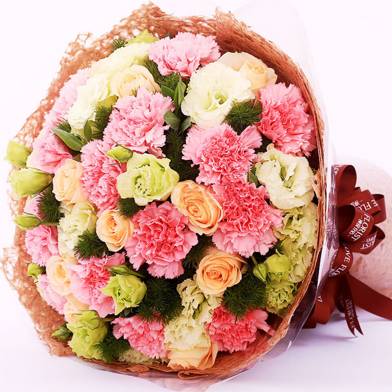 在外地的我昨晚临时给妈妈订了这么一束康乃馨。昨晚店家答应说今天白天专车专人一定能送到妈妈公司。我一开始还不相信,因为在那之前我还找了好多家,都说不确定能当天送到。今天一早,花就送到了妈妈办公室,妈妈发了图片给我,她很喜欢。真的很漂亮,也很新鲜。谢谢店家贴心的服务,绝对好评。有啥问题也及时回复我,然后还有祝福卡片。给很多很多赞呦!