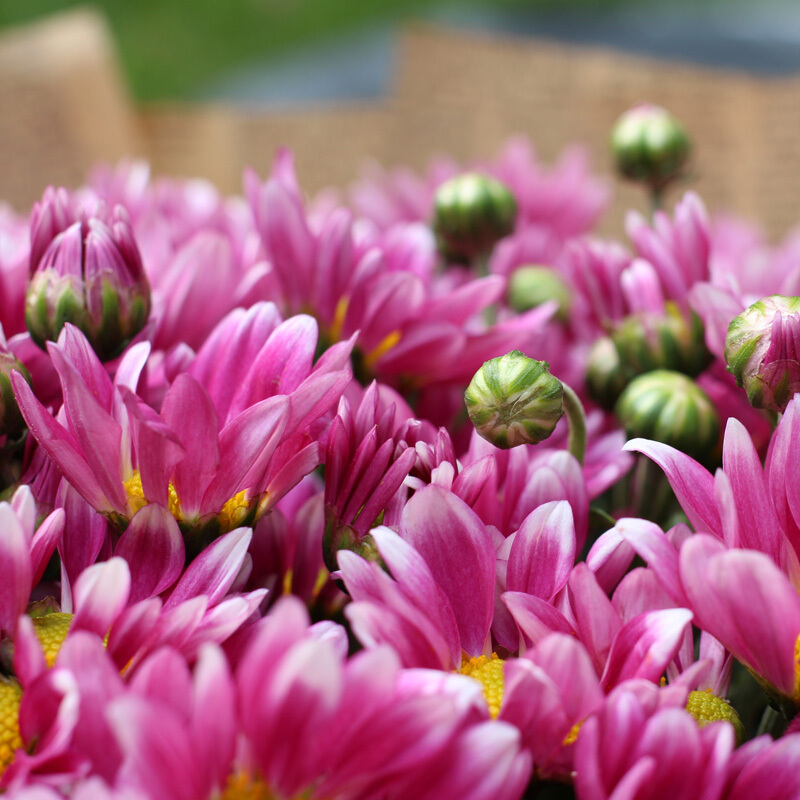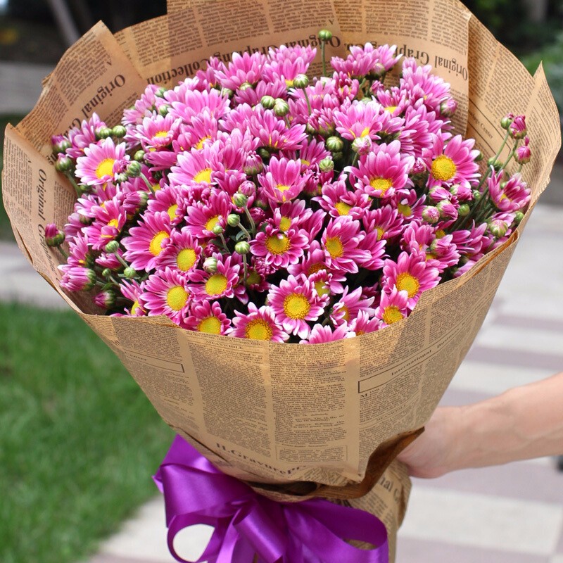 花 材:紫色小雏菊花束,直径在35cm左右。