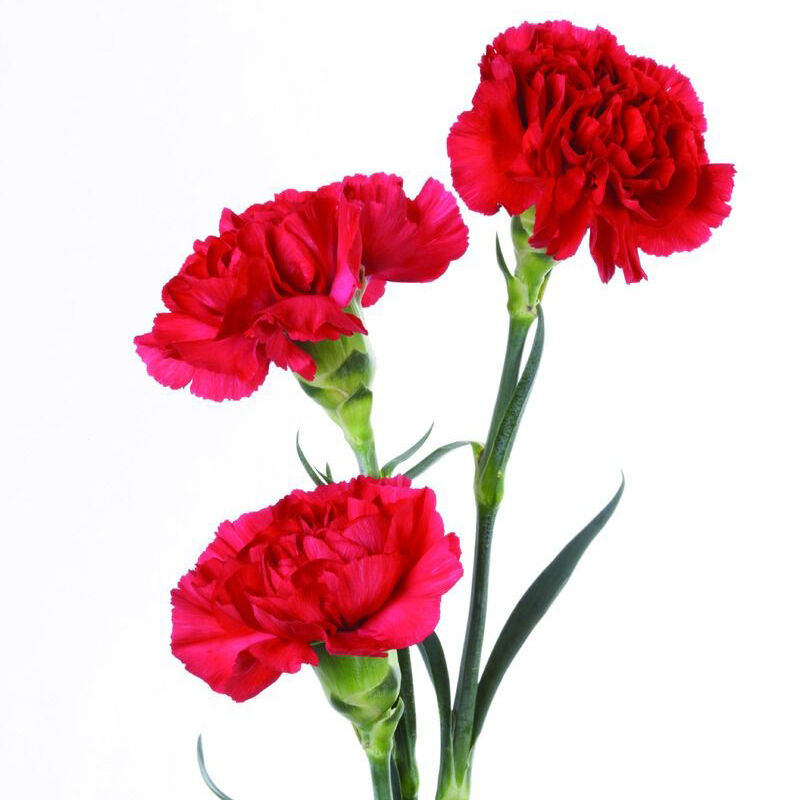 花 材:精选33支红色康乃馨,搭配叶上黄金点缀。