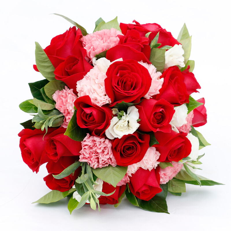 包装: 精选19朵红玫瑰,11朵粉色康乃馨,桔梗、栀子叶点缀。