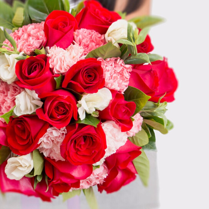 包 装:精选19朵红玫瑰,11朵粉色康乃馨,桔梗、栀子叶点缀。