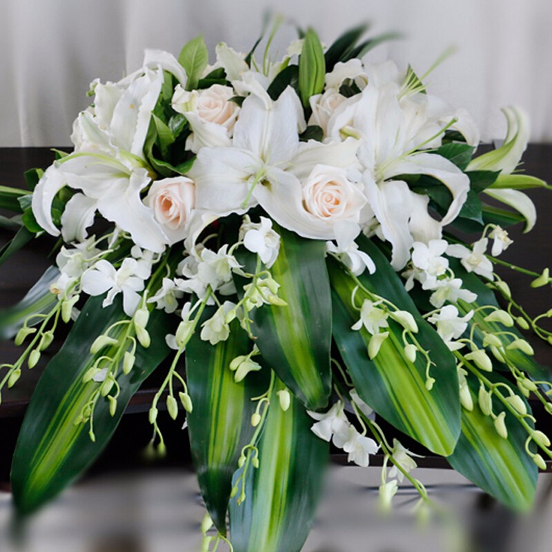 包 装:6朵香水百合,6朵香槟玫瑰,搭配兰花、巴西叶。