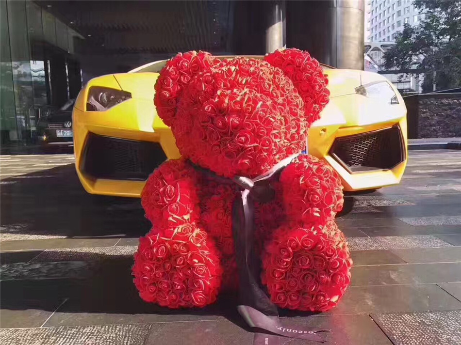 花 材:抱抱熊,超大,1314朵精品红色香皂花。