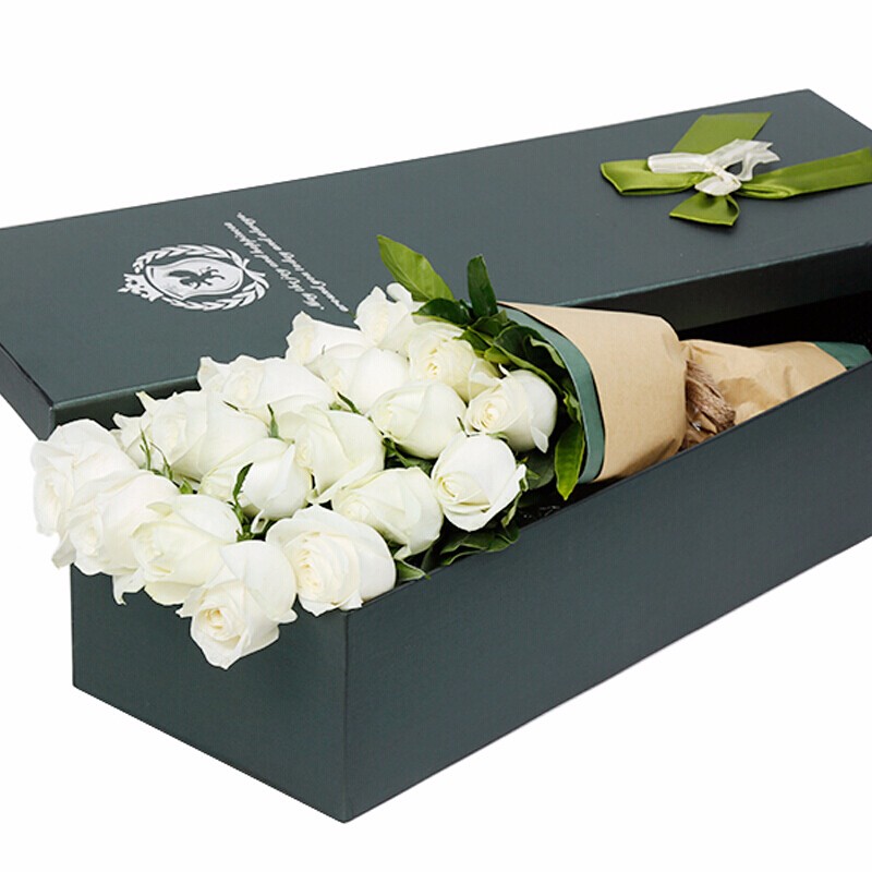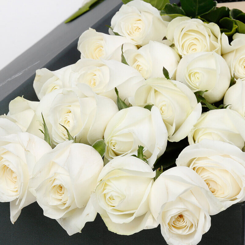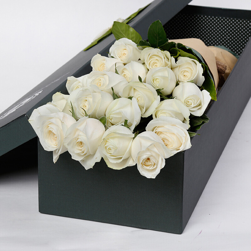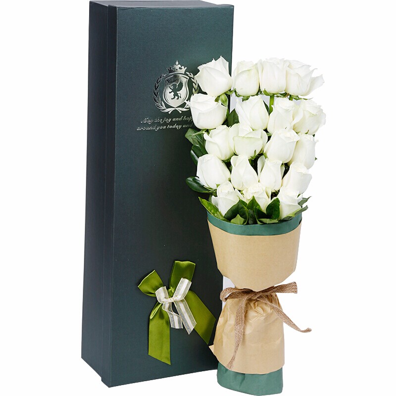 花 材:精选19枝顶级白玫瑰,搭配绿叶点缀。