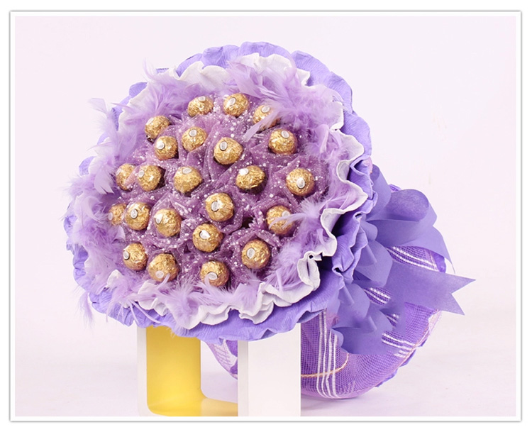 花材: 21支费列罗巧克力独立包装,羽毛环绕。
