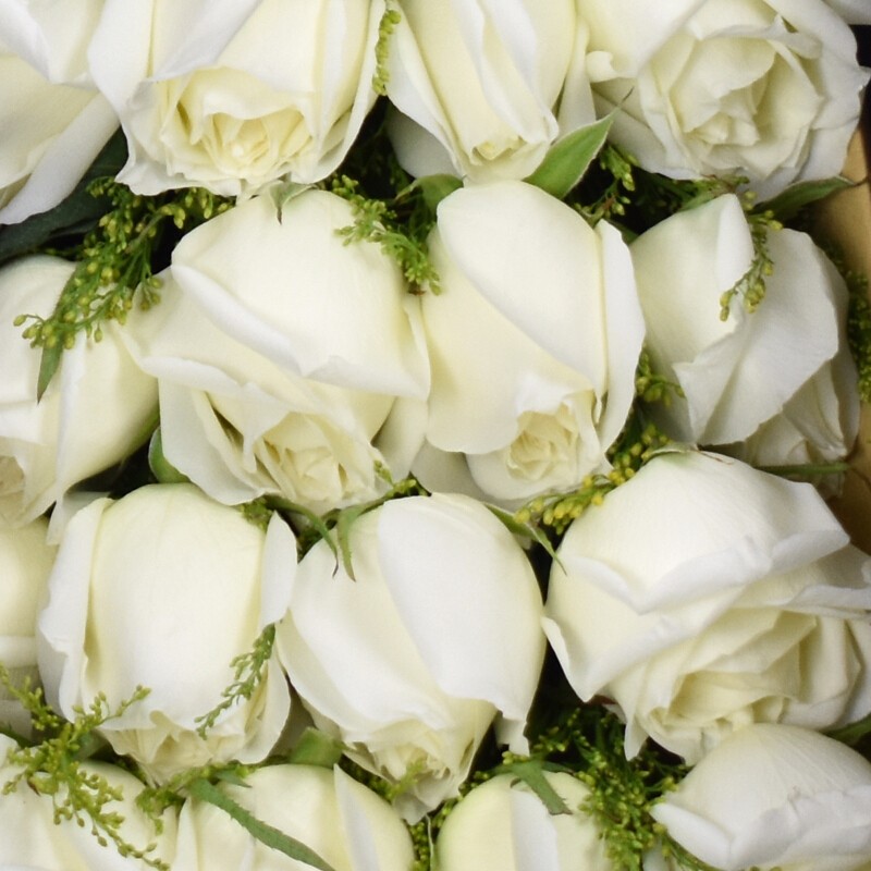花材: 19枝白玫瑰,搭配桔梗,黄莺。