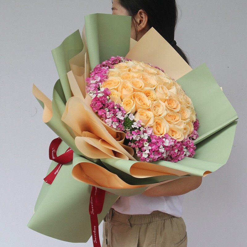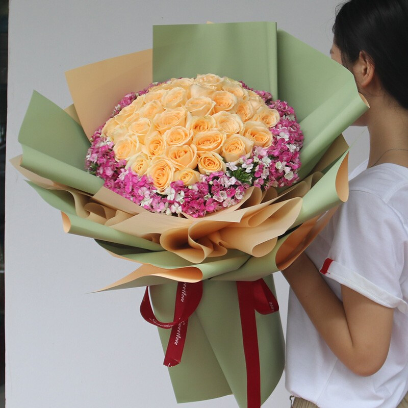 花真的比想象中的新鲜,送花老伯在楼下耐心等了好长时间,真是辛苦了。花很新鲜,很好。第二天了,撒点水照样很新鲜没有枯萎发黑,点个赞。送货很准时,点个赞,老婆很喜欢点个大大的赞!!!!