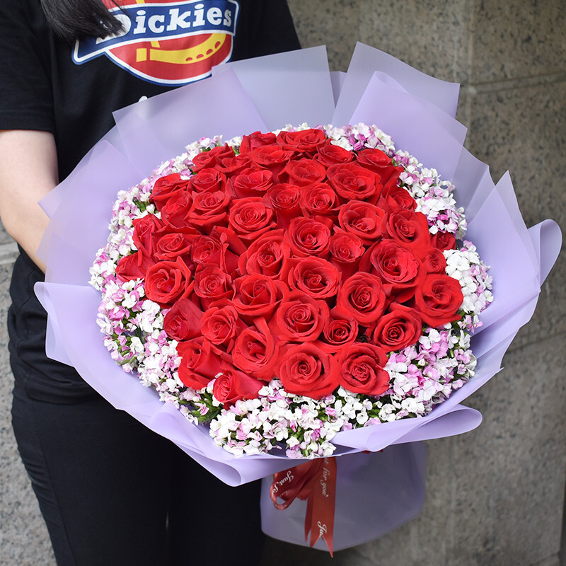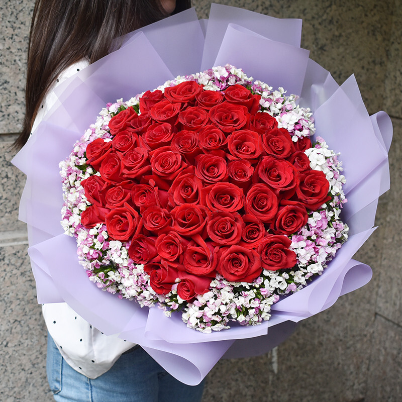 包装的很精致,花朵的质量的非常的好,每朵都花型都基本一致。用来求婚一下就成功了,女朋友爱不释手。早上9点就到了,很速度。客服也非常热情,非常好的店铺。全五星,以后再来光顾