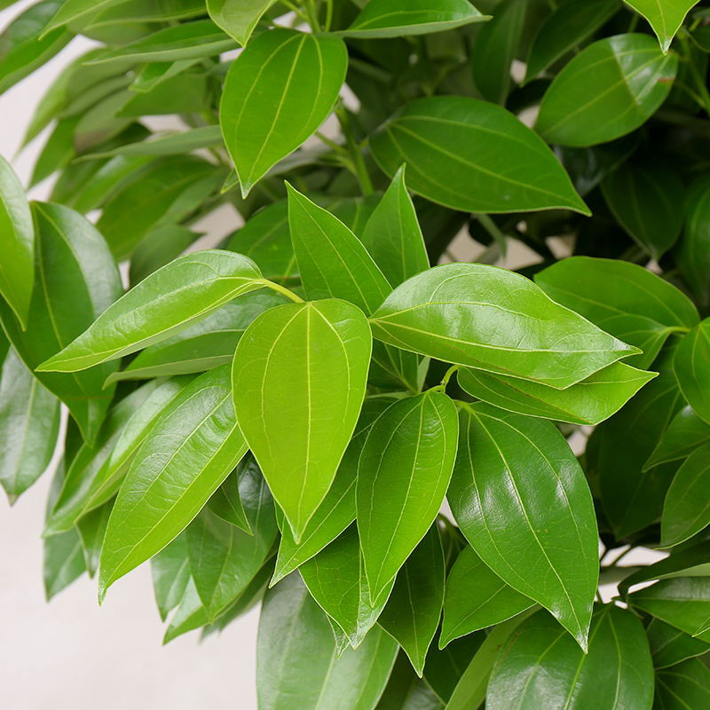 花 材:优美的盆栽观叶植物,又是非常漂亮的园景树。除了具有叶色亮绿、株型美观、耐阴、易管理的优点外,全株还独具清新香气,极适合在住宅、酒店等场所摆放。