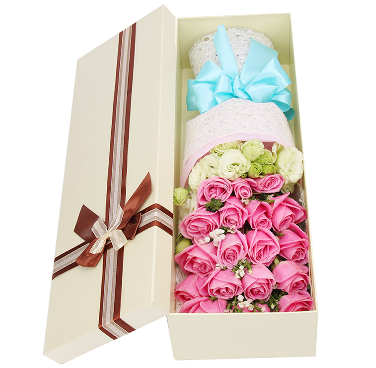 包 装:白色落水纸+粉色棉纸包装,蓝色蝴蝶结,高档礼盒包装。