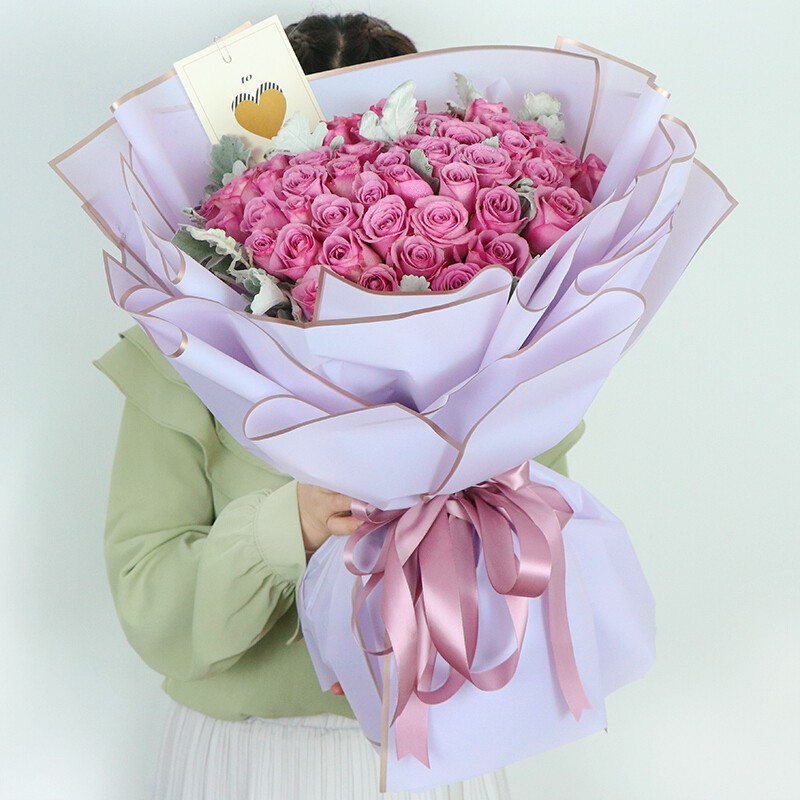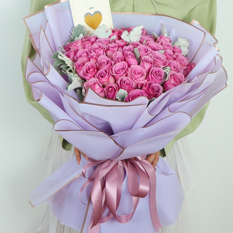 包 装:紫色镶边雾面纸包扎,同色系花结。