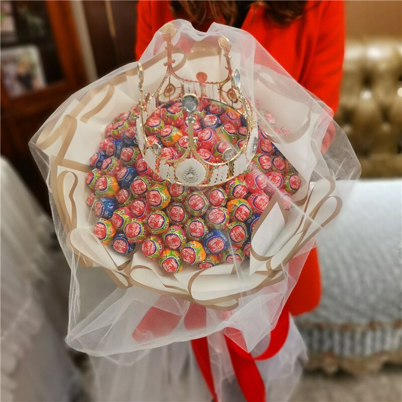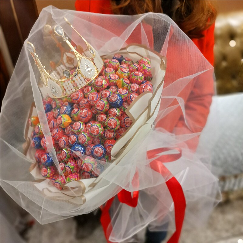 花材: 99颗棒棒糖,1个皇冠花面装饰。