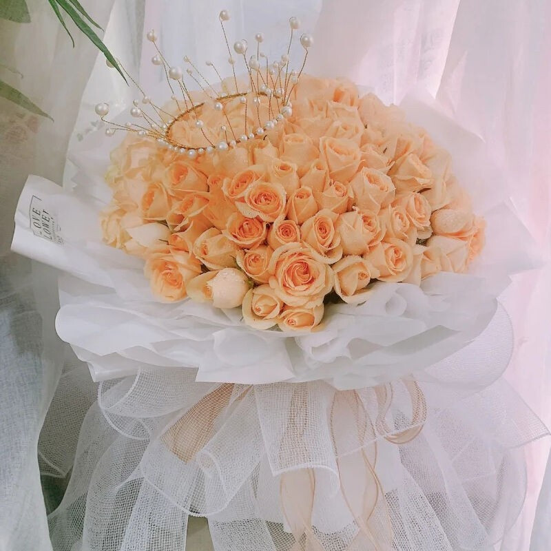 花 材:精选99朵香槟玫瑰,皇冠装饰。