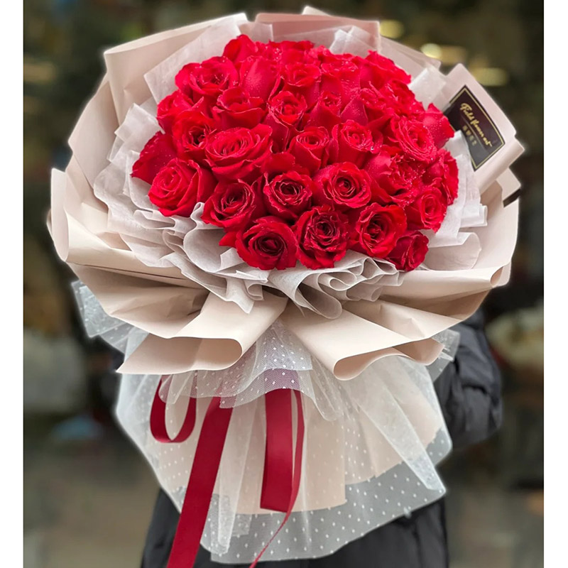 我和对象,是异地恋,给她一个惊喜,女朋友很喜欢,玫瑰花很鲜艳,她同事都很羡慕。还有写了英文的小卡片,自己想说什么,店家给写好的。而且还是定时定点的送到,非常满意。